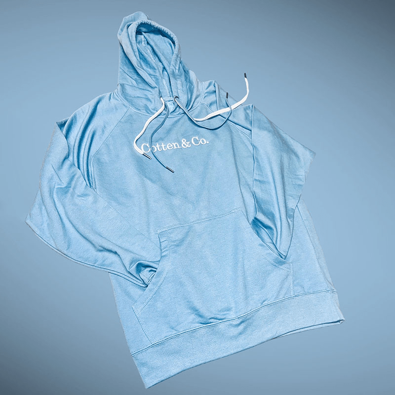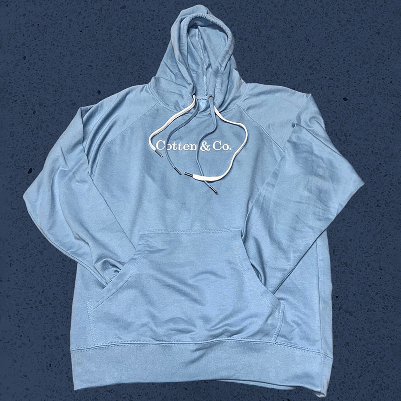 This hoodie is perfect for spring with these light colors and light weight. Soft and great for any occasion. The duel laces were something I had done in the pass but not with these colors yet. I hope yall like them as much as I do. The off white stitching in the front is to match th white laces along with the blue laces matching the blue cotten&co sizing tag on the inside.